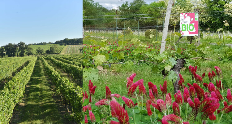 畑はアントル・ドゥー・メールの丘陵地帯に広がり、総面積は55haに及びます。土壌は粘土石灰質を主体とし、適度な保水性と排水性を兼ね備えています。この環境がブドウの成熟を穏やかに導きます。メルロを中心とした赤品種が豊かな果実味と滑らかな質感を生み出します。ソーヴィニヨン系の白品種はフレッシュさと香り高さを表現します。周囲には森や湖が点在しており、多様な生態系が保たれています。この自然環境がブドウの健全性を高めています。結果として、洗練されたバランスとピュアな果実味を備えたワインが生まれます。