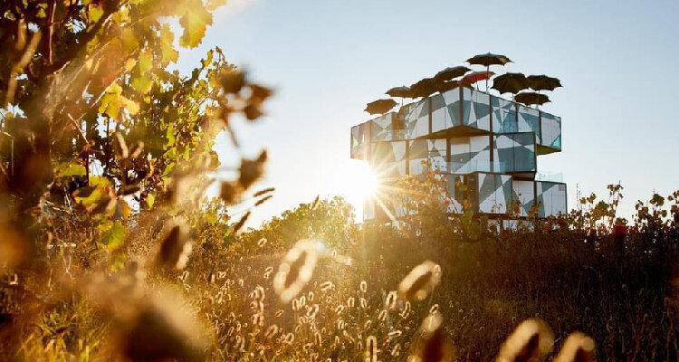 マクラーレン・ヴェイルはアデレード南に広がる地中海性気候の産地です。降雨量は年間170mm以下と少なく、安定した成熟が可能です。セント・ヴィンセント湾からの冷涼な海風が夏の気温を穏やかに保ちます。丘陵部には鉄分を含む石灰質土壌が見られます。平地には深い粘土や砂質壌土が広がります。この複雑な地質構成がブドウに個性を与えます。また畑の中には象徴的な施設ダーレンベルグ・キューブが建ち、造り手の創造性を体現しています。ダーレンベルグは各区画の特性を見極め、適切な品種を配置しています。代表作デッド・アーム・シラーズには凝縮感と緻密なタンニンが備わります。土地の多様性が味わいの奥行きを形作っています。
