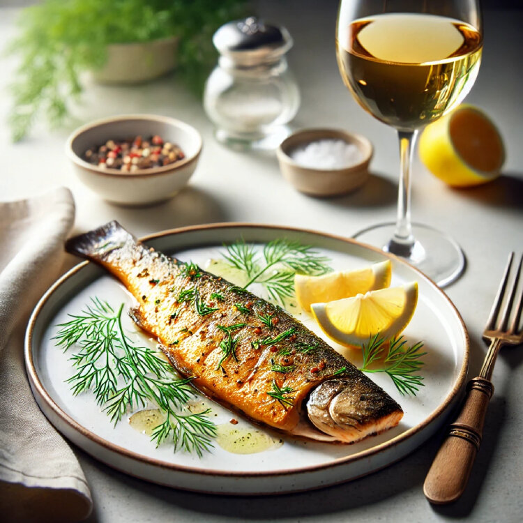 ワインの酸味とミネラル感が、マスのジューシーをまろやかさを引き立て、バランスの取れた食事体験を提供します。